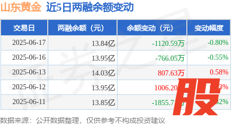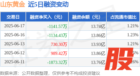 本站消息,6月17日泸深策略,山东黄金(600547)融资买入4662.0万元,融资偿还5803.57万元,融资净卖出1141.57万元,融资余额13.74亿元。